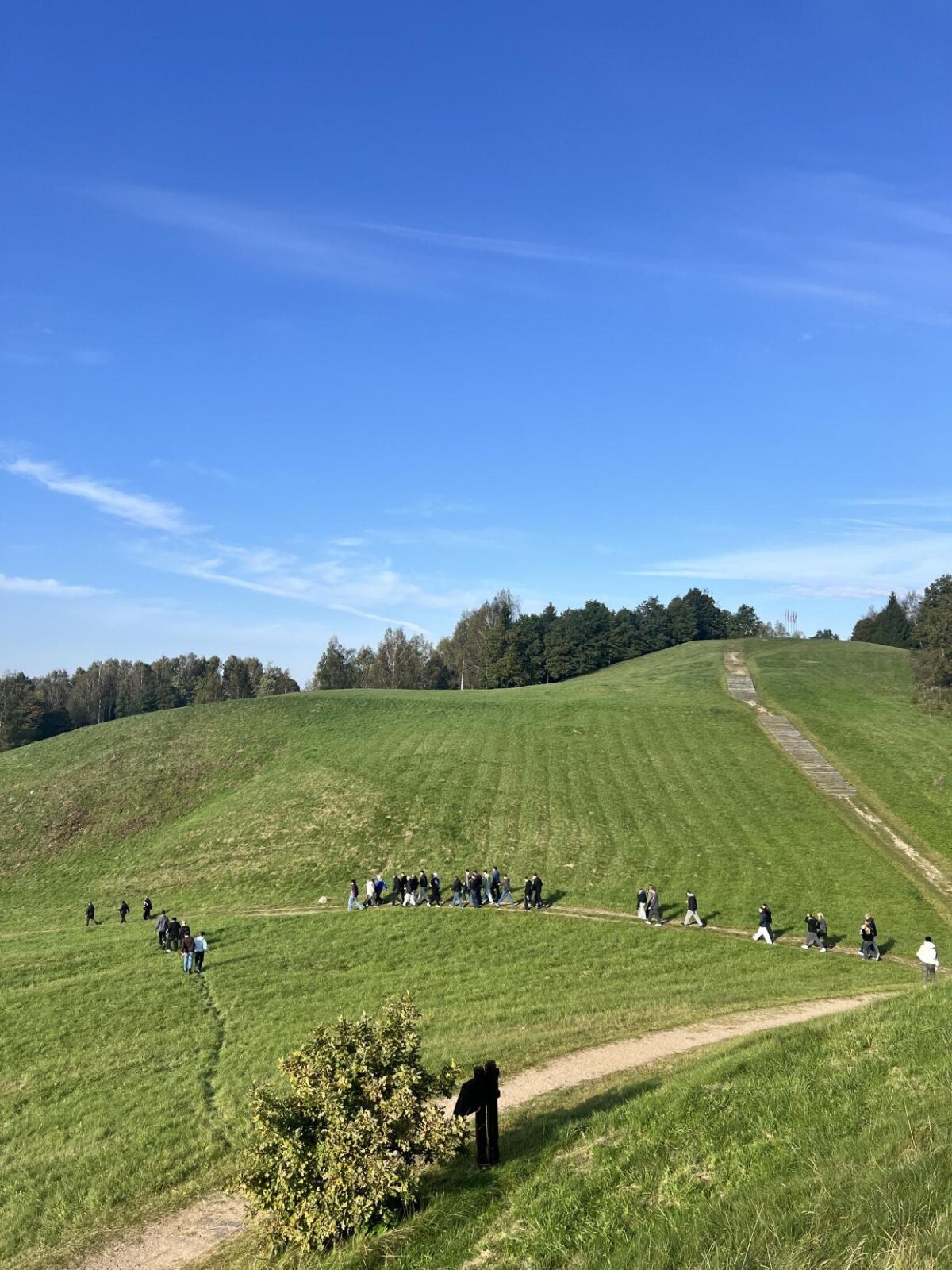 Kelionė prasidėjo Medvėgalyje, kur žygiuodami po kalvotą vietovę mokiniai lavino fizinį pasirengimą, klausėsi gido pasakojimų apie piliakalnio reikšmę, legendas ir kovas.