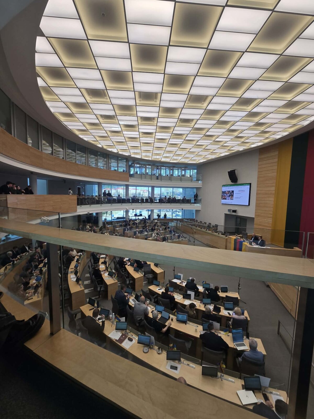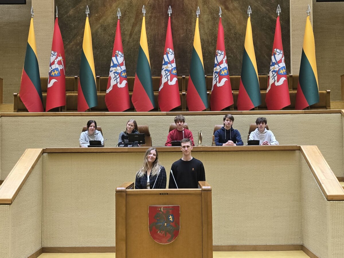 Šiandien Radvilų gimnazijos mokiniai turėjo progą apsilankyti Lietuvos Respublikos Seime, kur susipažino su pastato istorija ir iš arti pamatė, kaip vyksta balsavimai dėl įstatymų pataisų.