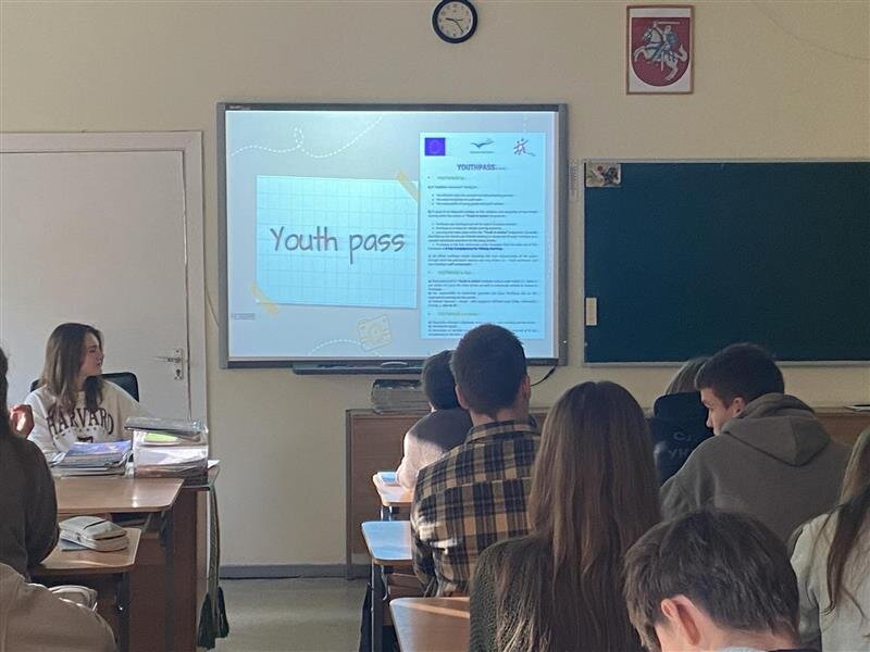 Spalio 9 d. mūsų mokyklos IV V klasės mokinė Urtė Žvybaitė pristatė II R ir II J mokiniams savo patirtį dalyvaujant ERASMUS+ projektuose Lietuvoje ir užsienyje. Urtė įdomiai pasakojo apie įvairias veiklas, sutiktus naujus draugus, su kuriais draugystė tebesitęsia iki šiol. Ji davė praktinių patarimų, kaip ieškoti galimybių išvykti į ERASMUS+ projektus ir įgyti įdomios patirties.