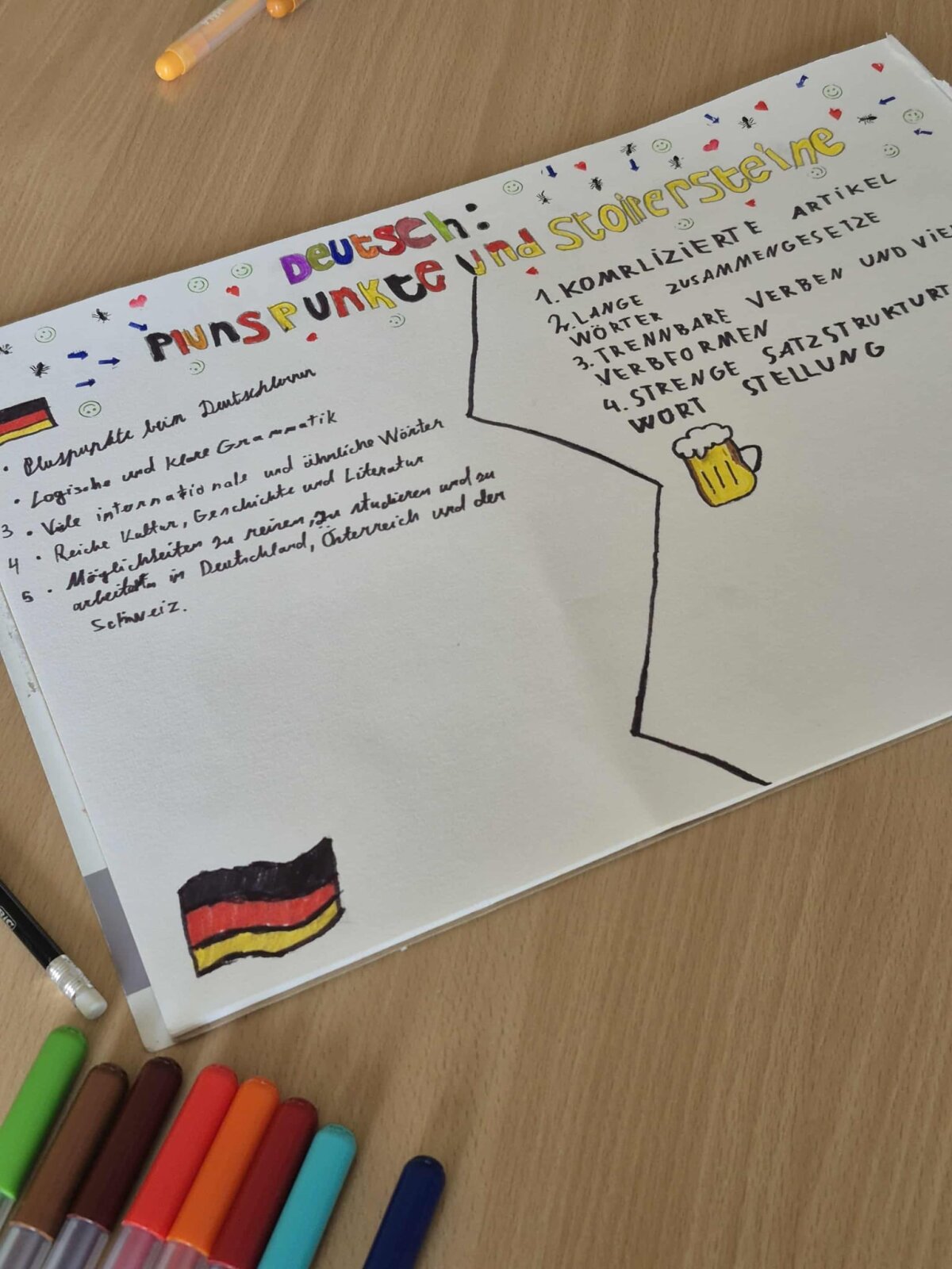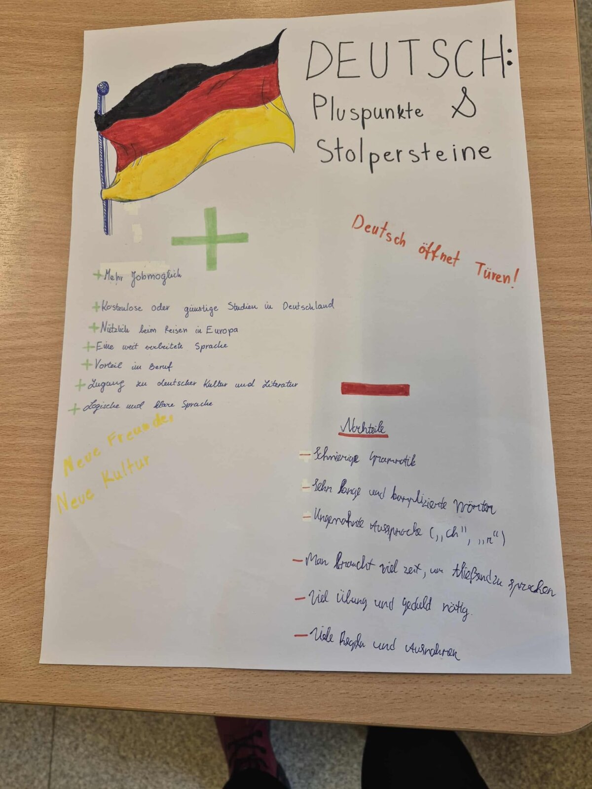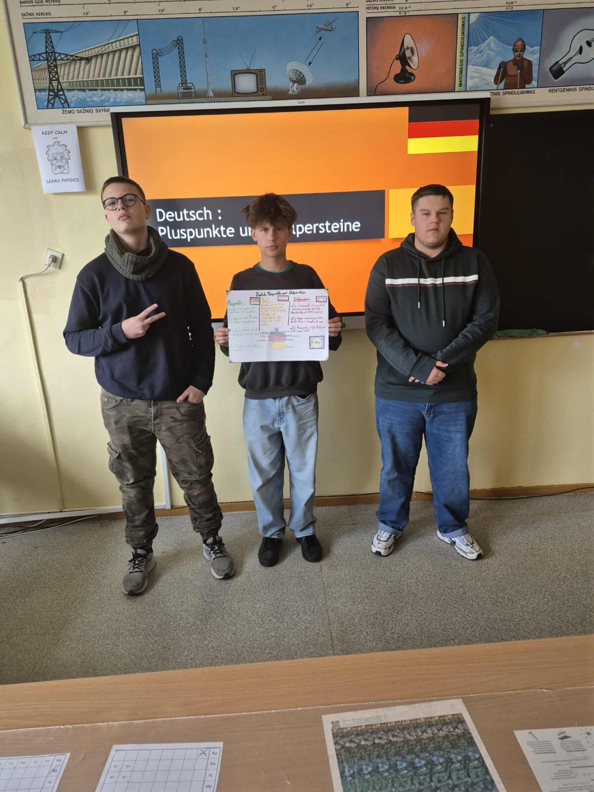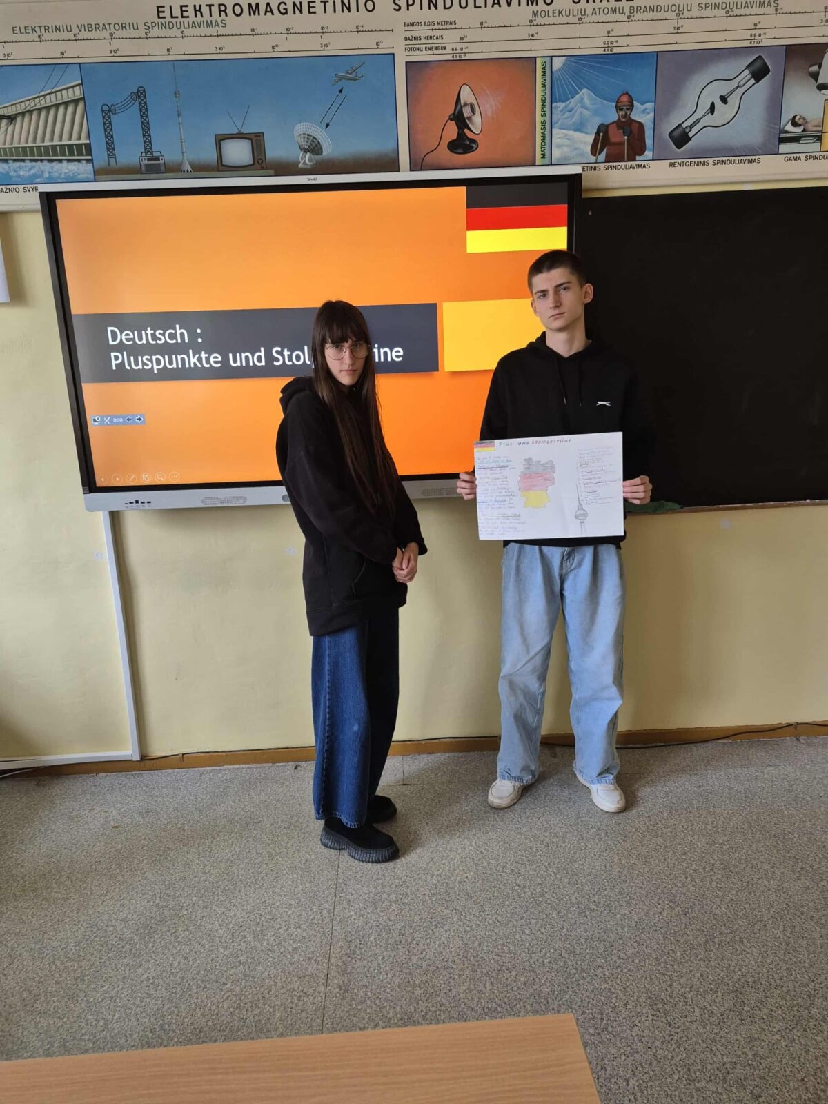 Ypač įdomiai savo mintis pristatė I–II klasių mokiniai, parengę projektą „Pluspunkte und Stolpersteine“ („Privalumai ir sunkumai mokantis vokiečių kalbos“). Jie dalijosi savo asmenine patirtimi, atvirai kalbėjo apie džiaugsmus bei iššūkius, su kuriais susiduria mokydamiesi šios kalbos, ir skatino vieni kitus neprarasti motyvacijos mokytis.