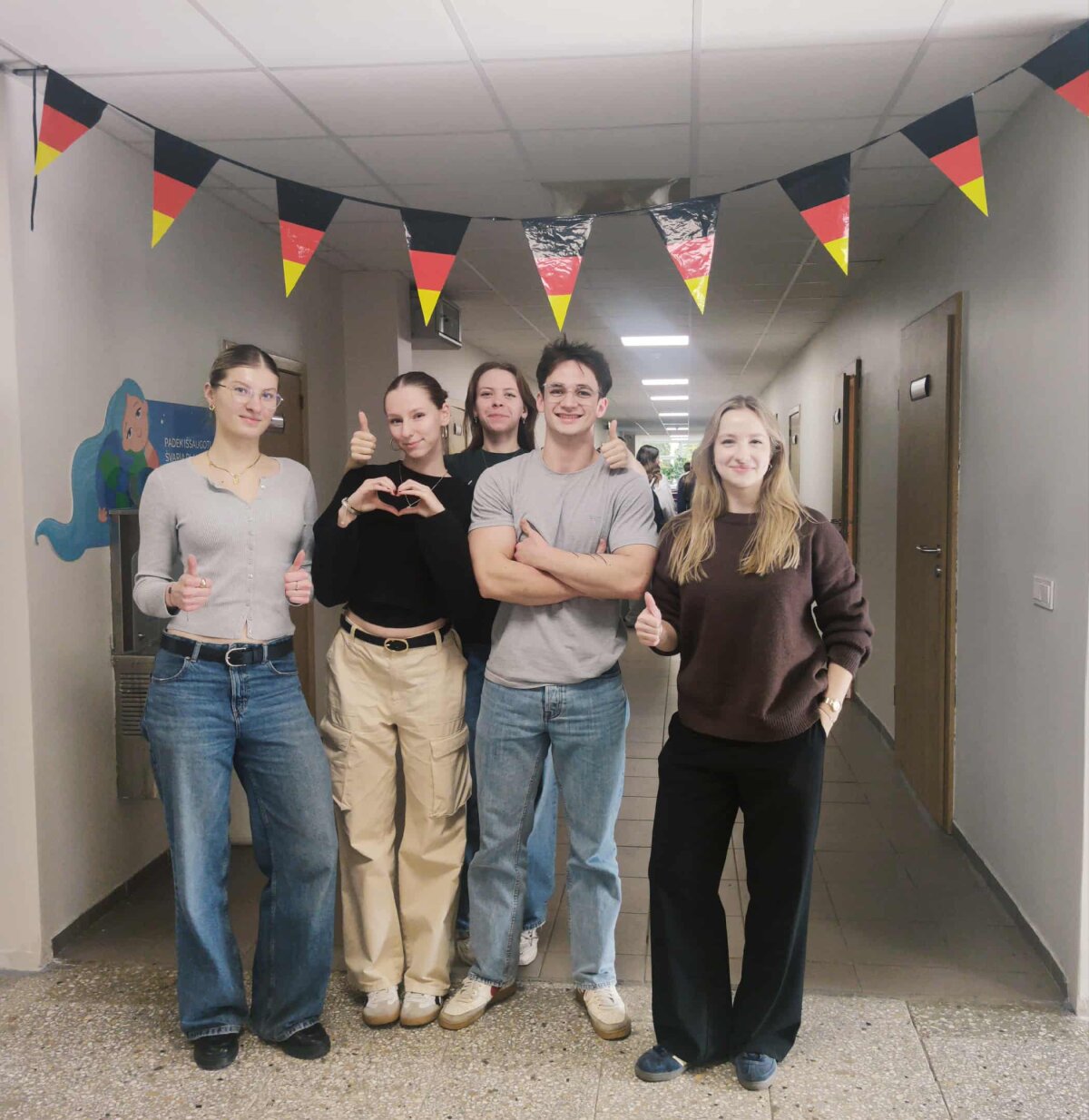 Jau nuo pirmadienio gimnazijos koridoriuose skamba vokiškos dainos, o fojė ant sienos publikuojamas vizualus pristatymas „Pažink Vokietiją“, pristatantis šalies kultūrą, tradicijas ir įdomius faktus. Vokiečių kalbos pamokose vyksta diskusijos apie kultūrinę įvairovę, tarptautines patirtis ir vokiečių kalbos teikiamas galimybes.