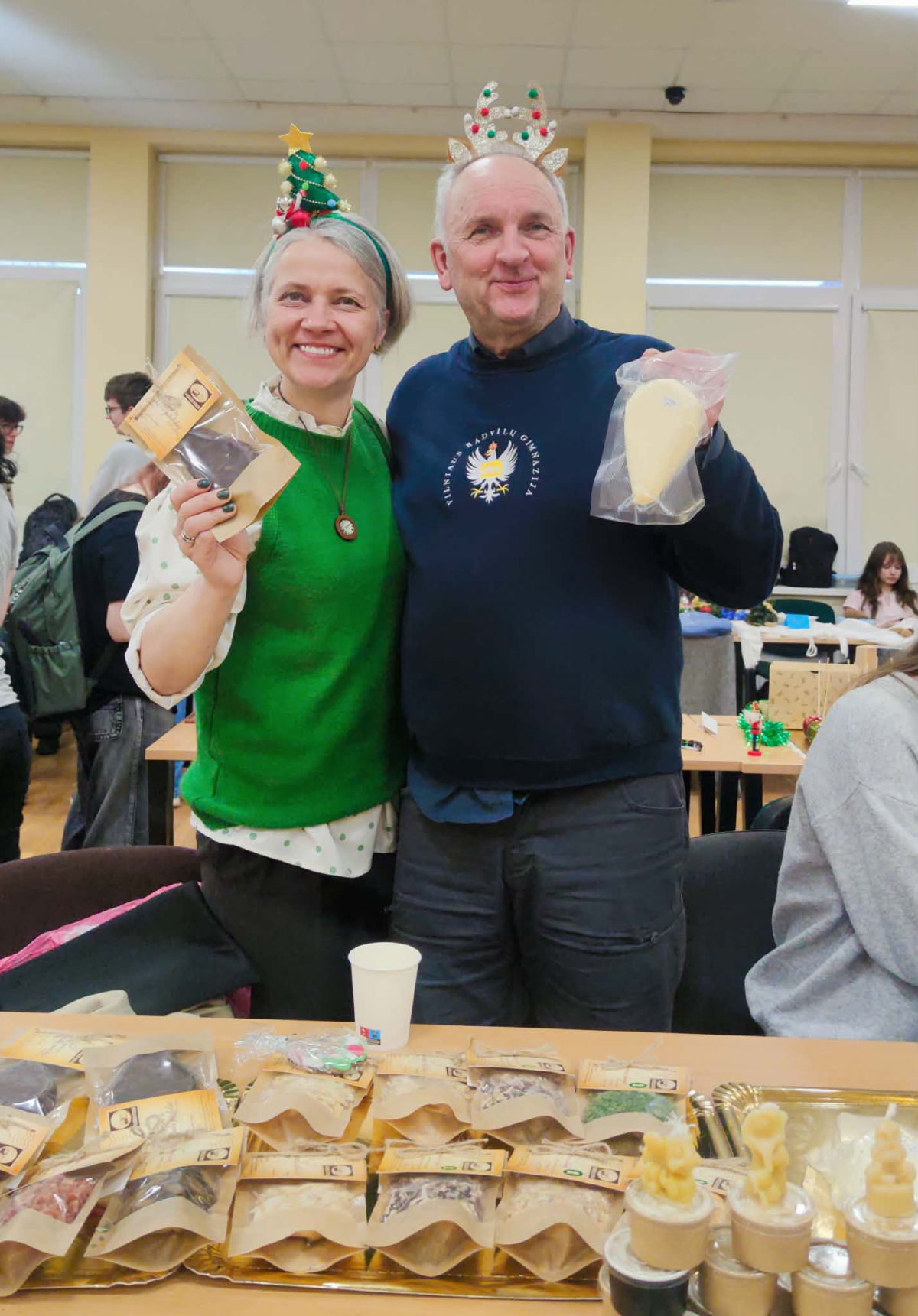 Ši Kalėdinė mugė buvo ne tik prekybos erdvė, bet ir puiki galimybė mokiniams praktiškai ugdyti verslumo, bendradarbiavimo ir kūrybiškumo kompetencijas. Renginį lydėjo šilta bendrystės atmosfera, o mokinių iniciatyvas palaikė renginio partneris – „Lietuvos Junior Achievement“.