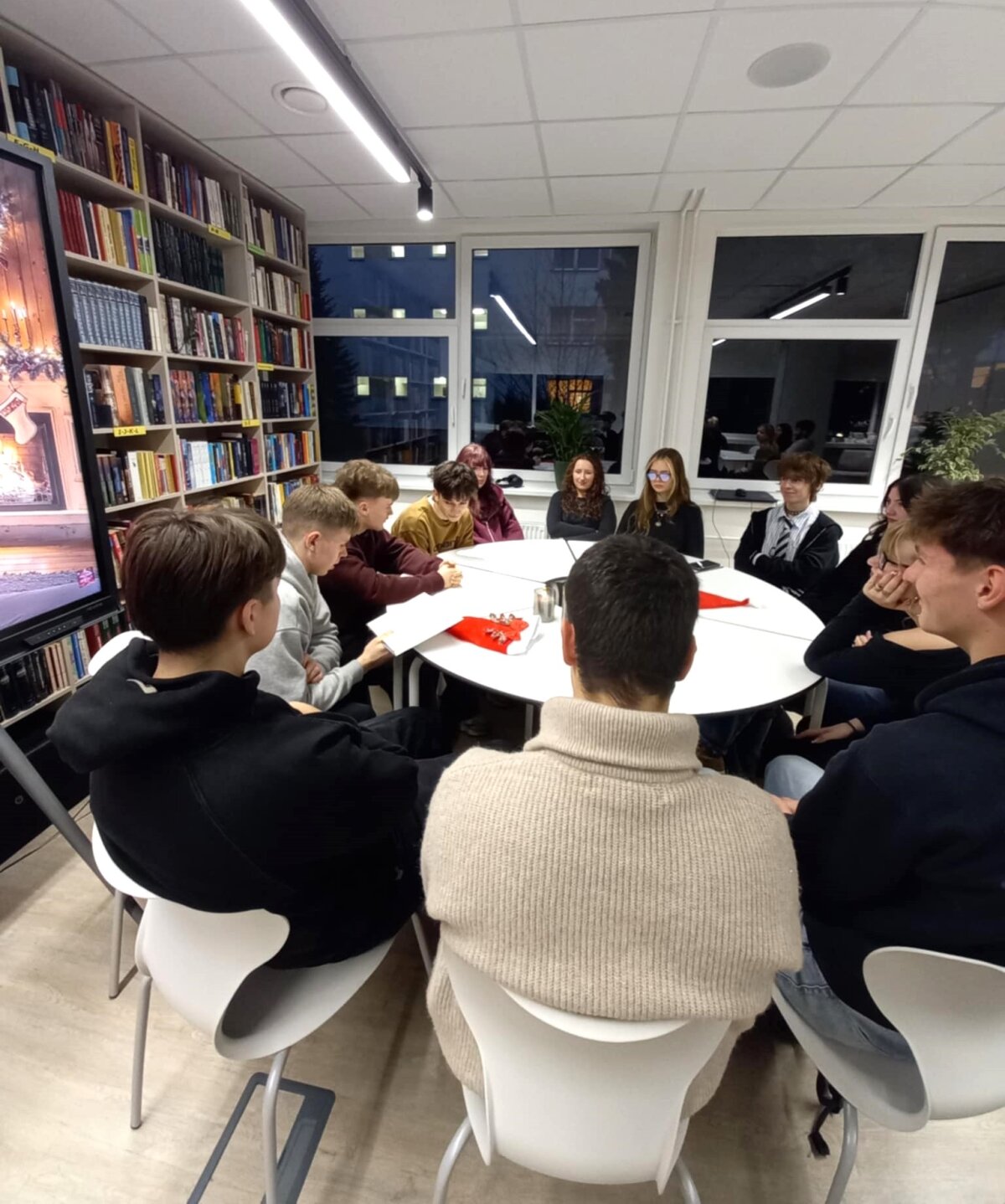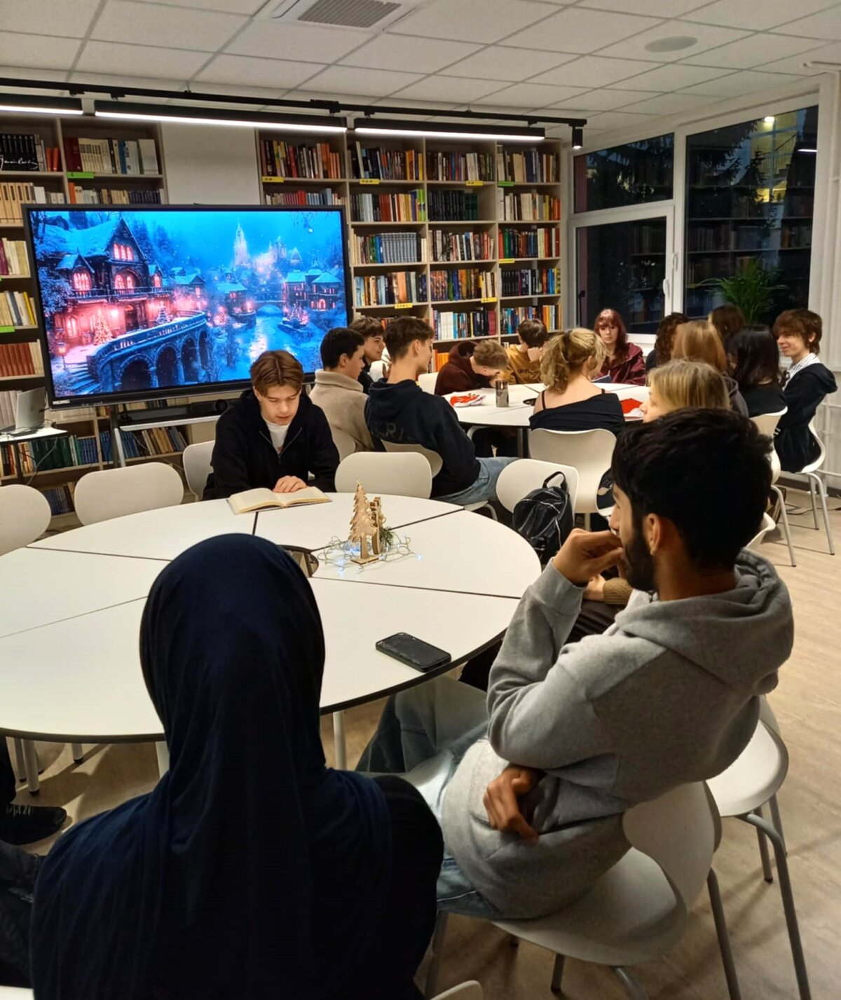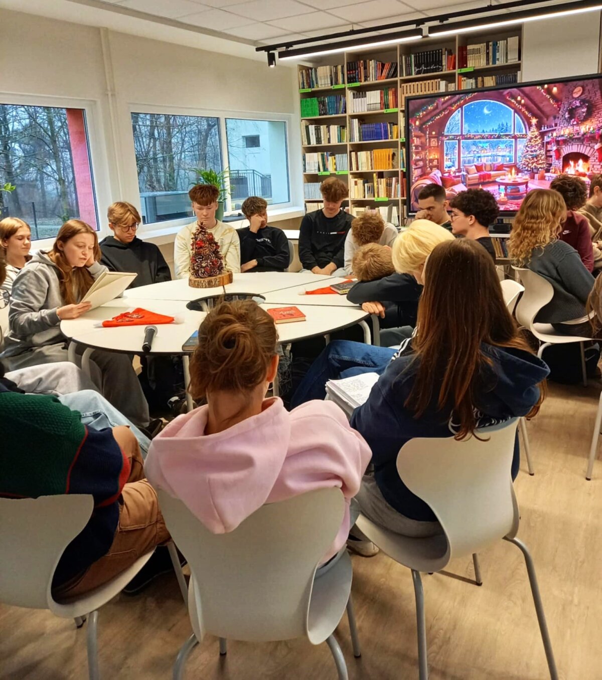 Artėjant gražiausioms metų šventėms knyga gali tapti jaukia ir praturtinančia advento laikotarpio tradicija. Ramybe ir šventine nuotaika dvelkiančioje gimnazijos skaitykloje skaitėme ir klausėmės jautrių, pamokančių, nuotaikingų kalėdinių pasakojimų.