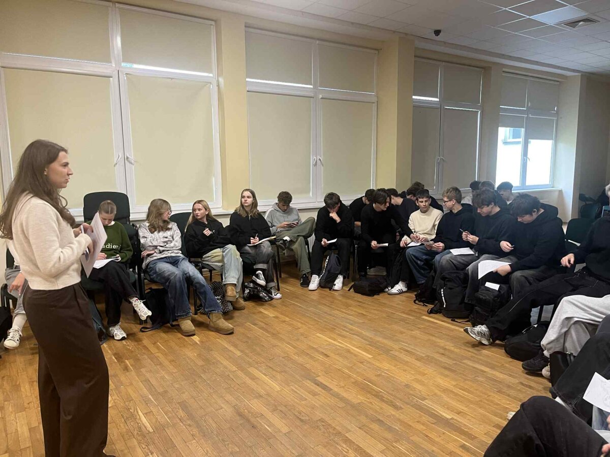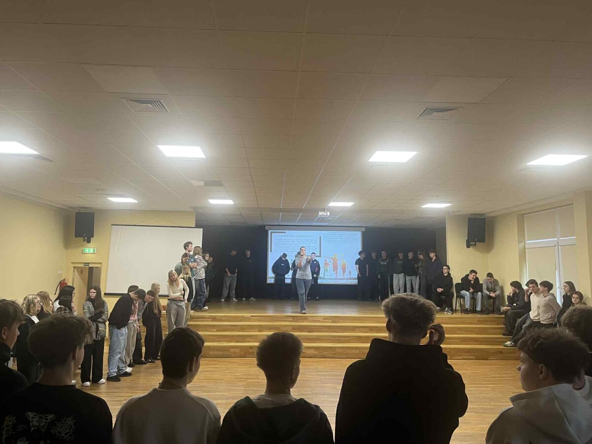 Paskaitą vedė Toma Dvilevičienė iš organizacijos „Ne imti, bet duoti“, pristatydama savanorystės galimybes ir kviesdama mokinius pažinti savo stiprybes bei poreikius.