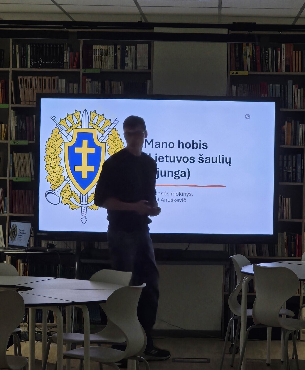 Mūsų mokyklos moksleivis, jaunasis šaulys Daniel Anuškevič, pristatė savanorystės galimybes Lietuvos Šaulių sąjungoje. Jis papasakojo, kuo užsiima jaunieji šauliai, kas jį motyvuoja laisvalaikį skirti šaulių veiklai, ir pasidalijo įsimintiniausiomis patirtimis.